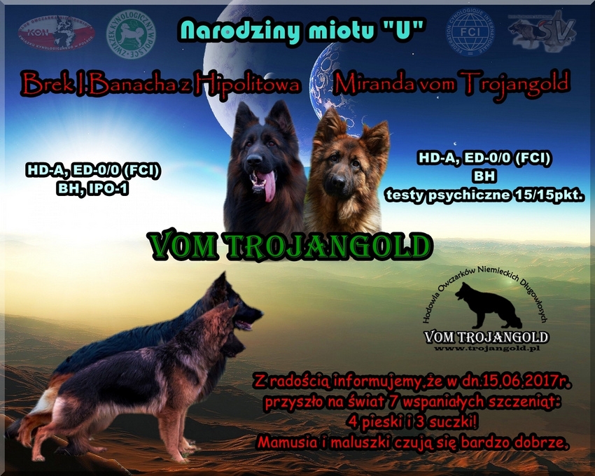 Z radością informujemy,że w dniu dzisiejszym nasze suczki Miranda vom Trojangold (Elita & Yonathan) i Lora Mis-Maz (Wega & Ferrari) oficjalnie uzyskały status suk hodowlanych!