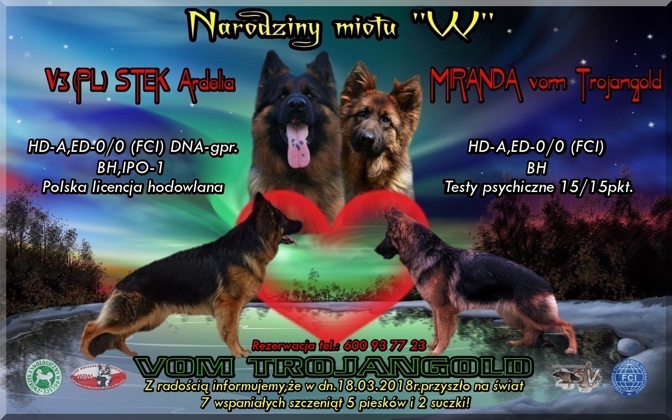W 2018 roku cieszyliśmy się z narodzin w naszej hodowli pięknych szczeniąt z 4 miotów,w tym pierwszego miotu po naszej czarnej suczce Arabice i naszym reproduktorze Zottelu vom Frankengold.