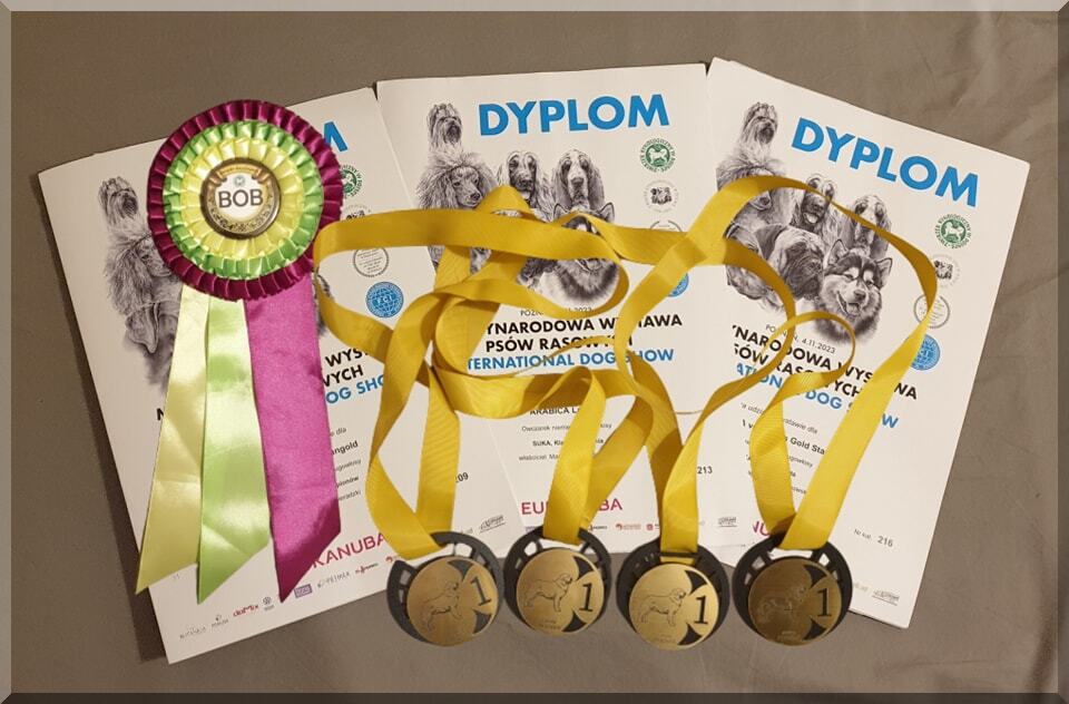 Z radością informujemy,że w dniach 03-04-05.11.2023r. nasza córeczka Ursa vom Trojangold (Miranda vom Trojangold & Brek I.Banacha z Hipolitowa) wzięła udział w Międzynarodowej Wystawie Psów Rasowych w Poznaniu zdobywając 3 x złoty medal!