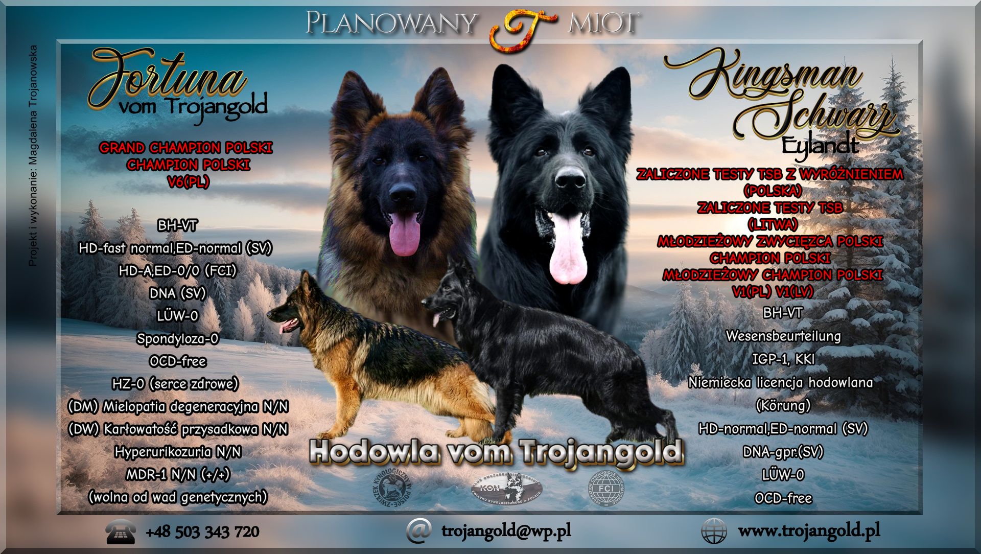 Czujemy się niezwykle zaszczyceni,że to nasza hodowla została wybrana spośród wielu innych hodowli owczarków niemieckich długowłosych i że to nasze psy Yacki vom Butjenter Land,Miranda vom Trojangold,Liroy vom Trojangold i Xavier vom Trojangold mogły godnie reprezentować swoją rasę przed szeroką publicznością!
